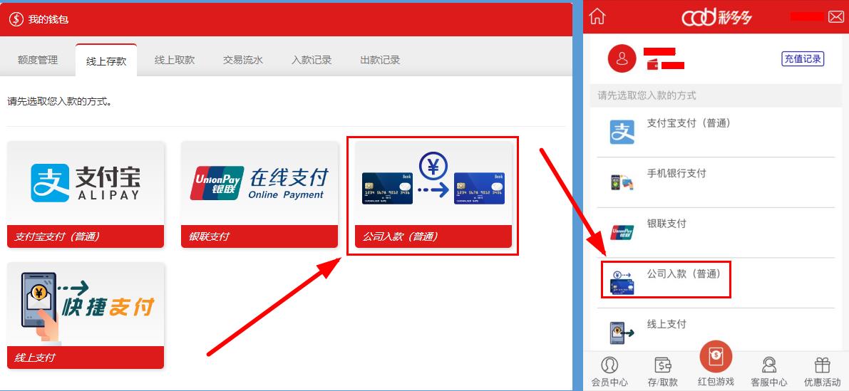 电脑用户:进入线上存款页面,点击公司入款(普通)。